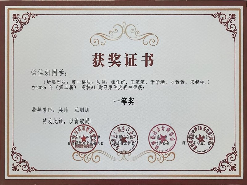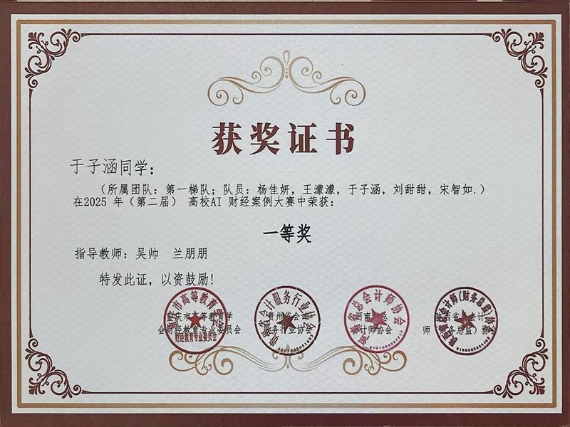 6月19日,2025年全国高校AI财经案例分析落下帷幕。我校财税学院学子凭借卓越的专业实力与团队协作精神,在全国百余支参赛队伍中脱颖而出,依次斩获一等奖、二等奖、三等奖。