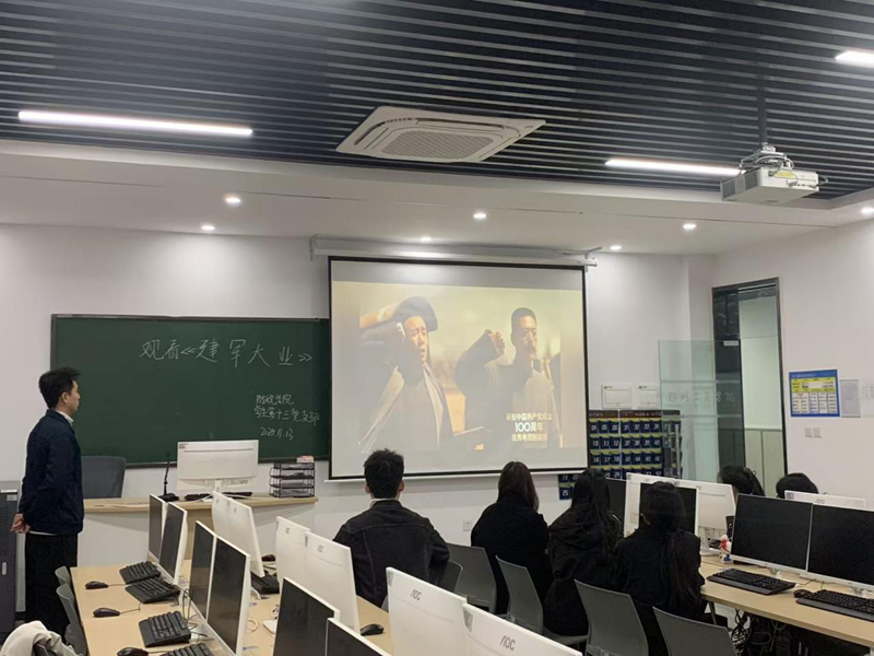活动伊始,李记辉作开场讲话。他指出,《建军大业》是一部红色经典影片,生动再现了中国共产党创建人民军队的光辉历程。他要求支部成员们要通过观影重温党史、感悟初心,从革命先辈的奋斗中汲取精神力量。随后,支部成员集中观看影片。影片再现了1927年大革命失败后,中国共产党人通过南昌起义、秋收起义等艰苦斗争,创建人民军队的壮阔历程。先辈们一个个浴血奋战的壮举,让全体支部成员深切感受到建军伟业的艰辛与理想信念的纯粹。最后,李记辉作总结发言。他肯定了本次活动成效,指出这不仅是一次深刻的党史教育,更是一次党性锤炼。他号召大家坚定信念、凝聚力量,以昂扬姿态投身学习与实践,书写新时代青年的责任与担当。