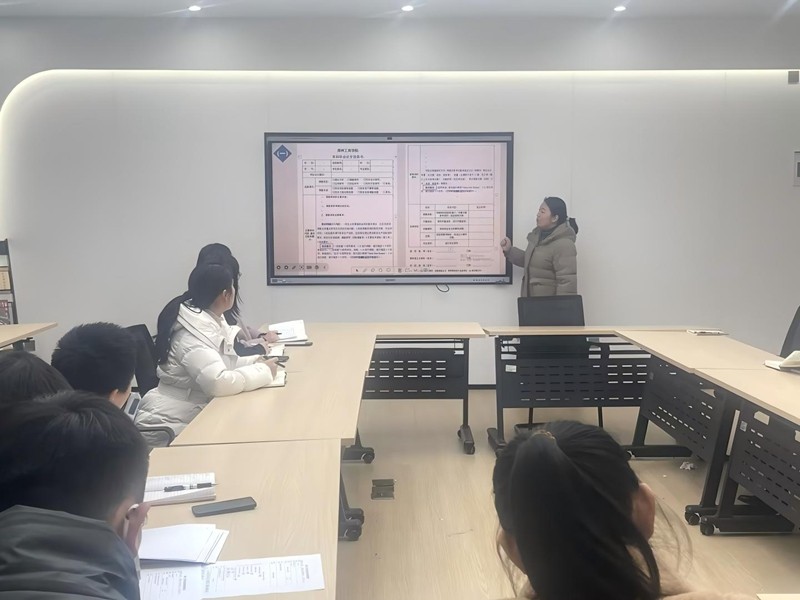 活动伊始,沈世琳强调了论文工作对于学生的重要性,规范填写是保障论文过程管理质量、明确师生责任、确保论文顺利推进的基础前提。随后,论文工作负责人李炳如为全体教师进行了详细讲解。她系统梳理并解读了学校及学院关于本科毕业论文任务书的各项格式与内容要求,逐一明确填写规范,并重点介绍了使用“格子达”系统在线下达论文任务书的具体流程和关键注意事项,帮助老师们熟悉数字化管理平台的操作。最后,闻坤老师针对“格子达”系统的实践应用又进行详细补充说明。他针对一些常见的系统操作问题提供了清晰的解决方案,并与在场教师就系统使用中可能遇到的疑难问题进行互动交流。