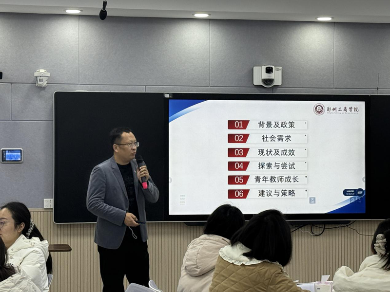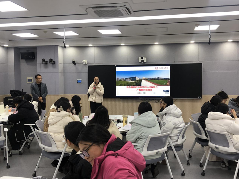 12月12日,财税学院在2号教学楼308智慧教室开展“助力青年教师教学与科研双提升——产教融合新路径”专题培训活动。此次活动由财税学院副院长荆梦婷及部分青年教师参加,工学院刘剑院长主讲。
