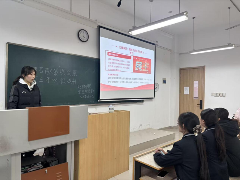 活动伊始,李帅帅以“理论学习明方向”为核心,组织支部成员学习基层党组织建设相关文件、民主评议工作规范及优秀支部建设案例。通过领学解读、要点梳理的方式,帮助积极分子深化对“建言献策、民主评议”重要性的理解,明晰参与支部建设、开展自我评议的核心要求。接着,活动进入“民主评议促成长”环节。入党积极分子依次进行自我评议,从思想觉悟、学习表现、责任担当、作风纪律等方面深入剖析自身不足;其他成员本着客观公正的原则,提出中肯的评价与改进建议。支部成员纷纷表示将以更高标准要求自己,以实际行动践行入党积极分子的责任担当。最后,李帅帅做活动总结,充分肯定了全体积极分子的学习热情与参与成效,强调要以此次活动为契机,持续深化理论学习,强化责任担当,将党建学习成果转化为干事创业的实际动力。