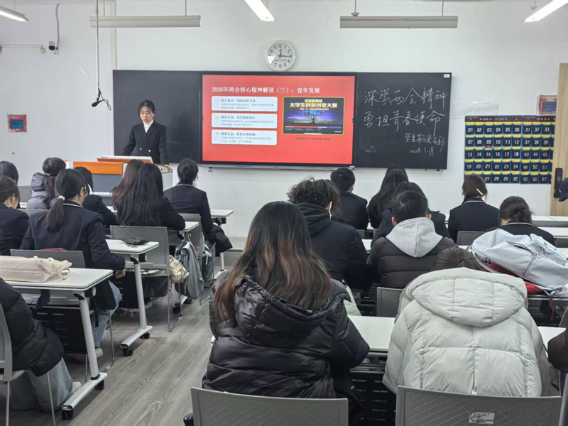 活动伊始,在张聖越的带领下,支部成员集中学习研读《“十五五”规划纲要(草案)》(摘要),深刻把握两会精神核心要义与实践要求。同时,张聖越通过系统梳理全国两会精神的核心内容,重点聚焦两会关于教育等方面的重要论述,引导支部成员把个人发展融入国家发展大局。接着,在交流研讨环节,支部成员围绕两会精神深入探讨,深刻领会其聚焦高质量发展、新质生产力与民生保障的内涵,既为国家发展指明了方向,也让青年群体对自身使命有了更清晰的认知。最后,张聖越作总结发言。她指出,两会精神为国家发展描绘了清晰的蓝图,支部成员要以此次活动为契机,持续深化两会精神学习,把学习成果转化为坚定理想、锤炼党性、服务同学、奉献社会的实际行动,勇担时代赋予青年的使命,争做新征程中的奋进者,为支部发展贡献智慧与力量。