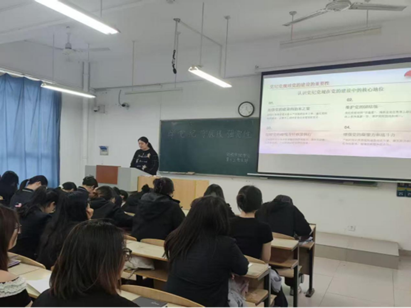 活动伊始,李佳莉紧扣主题,从党纪党规的内涵意义、六大纪律要求、典型案例警示、思想防线建设四个维度展开系统讲解,引导支部成员深刻认识纪律建设的严肃性与重要性。随后,全体支部成员围绕“日常学习生活中怎样筑牢纪律底线”等话题展开热烈讨论,结合自身校园经历、班级工作、社会实践分享真实感悟,对照典型案例自查反思、相互交流提醒,在思想碰撞中深化纪律认知,沉浸式体会“纪律无小事”的深刻内涵,接受了深刻的精神洗礼与纪律教育。最后,李佳莉进行总结,党纪学习不是“遥远的要求”,而是日常言行的标尺、学习生活的准则,未来要在按时参加组织生活、端正学习态度、规范日常言行等方面严格要求自己,把纪律意识融入学业提升、志愿服务、社会实践全过程,以实际行动展现青年党员的良好风貌。